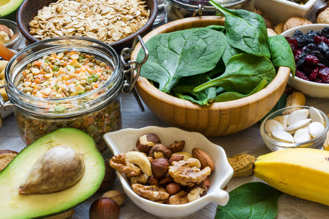 Priporočene količine magnezija lahko dobimo z uživanjem raznolike prehrane, ki naj jo sestavljajo stročnice, oreščki, semena, polnozrnati izdelki, zelena listnata zelenjava (špinača, rukola …), mlečni izdelki (mleko, jogurti …), z magnezijem obogateni kosmiči, alge, suho sadje. Na primer 100 gramov banane vsebuje okoli 30 mg magnezija, 100 gramov orehov 144 mg, 100 gramov polnozrnate pšenične moke pa 103 mg tega minerala.