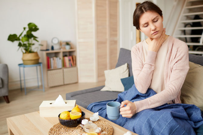 Zagotoviti moramo dobro prehodnost nosu, trudimo se dihati skozi nos, saj se zrak v njem ogreje, navlaži in očisti. Če dihamo skozi usta, lahko suh in hladen zrak dodatno dražita sluznico žrela. Ob bolečinah v žrelu uporabimo tabletke za lizanje ali pršila in tekočine, ki delujejo lokalno protivnetno in hkrati omilijo bolečine v žrelu. Pri akutni virusni okužbi je pomembno, da si vzamemo čas za počitek, ostanemo doma in se ne naprezamo. S tem, ko ostanemo doma, preprečimo širjenje okužbe med sodelavce, sorodnike in druge.