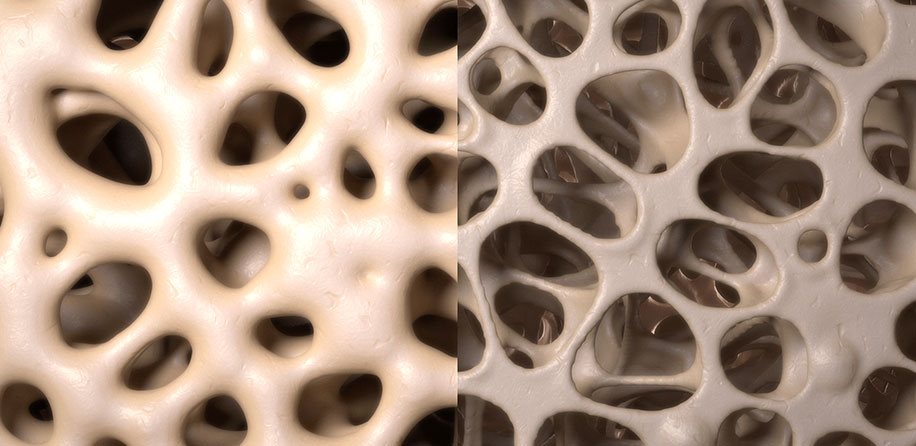 OSTEOPOROZA je bolezen kosti, ko le-te postanejo redkejše, krhkejše in se lažje zlomijo. Pri bolnikih z osteoporozo se že ob majhni poškodbi, sorazmerno nežnem padcu iz stojne višine, celo kašlju, zlomijo vretenca, kosti kolka, roke – ponavadi tik nad zapestjem. Zaradi zlomov vretenc se bolniki z osteoporozo zmanjšajo, hrbet postane ukrivljen in zgrbljen. Osteoporoza se navadno razvija skozi daljše obdobje, najhitrejši proces redčenja kostnine steče pri ženskah v prvih letih po nastopu menopavze, pri moških pa z desetletnim zamikom. Bolezen moramo odkriti preden pride do resnejših okvar in preden se kosti zlomijo. Danes imamo zdravila, ki bolezen ustavijo in preprečijo njeno napredovanje.