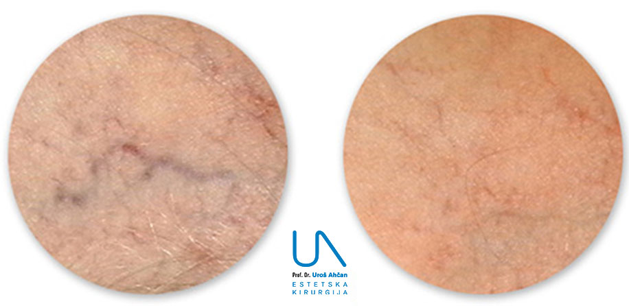 So iz estetskega vidika v večjem ali manjšem obsegu moteče pri 40 odstotkih žensk. Pojavijo se zaradi dedne nagnjenosti, vplivov hormonov, debelosti in staranja. Metoda za zdravljenje ostaja skleroterapija. Uspešnost bistveno izboljšamo, če sklerozacijo dopolnimo z laserskim zdravljenjem ven, ki imajo premer do 1 mm, ter ven v predelu gležnjev in kolen, ki jih težko injiciramo. Lasersko lahko zdravimo vene s premerom do 5 mm, vendar uspešnost zdravljenja upada z naraščajočim premerom in globino spremembe. Povrhnje (rdeče) teleangiektatske venule s premerom do 1,5 mm zdravimo z laserjem KTP, za večje (modre) pa uporabimo laser Nd:YAG. Meja je zgolj orientacijska, saj natančna določitev parametrov oziroma izbira laserja in spremenljivk temelji na kliničnih izkušnjah. Za zadovoljiv učinek je običajno potrebno večkratno zdravljenje. Končni rezultat ocenjujemo osem tednov po zadnjem zdravljenju.
