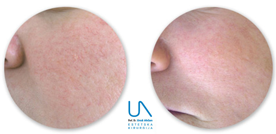 Teleangiektazije na obrazu so vidno razširjene žilice, ki so pogost kozmetični problem predvsem svetlopoltih ljudi. Poleg dedne nagnjenosti poznamo več dejavnikov, ki povzročajo razširjene žilice različnih oblik.Vzdolžne in razvejane se pojavljajo predvsem v predelu nosu, medtem ko so pajkaste pogostejše na licih. Velikost in oblika spremembe določa izbiro optimalnega laserja za zdravljenje. Na lasersko zdravljenje se bolje odzovejo žilice manjšega premera (pod 0,4 mm).